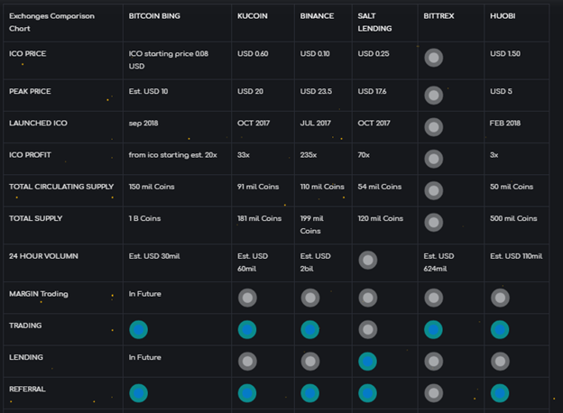 ICOの価格:1 BING = 0.50 USD
